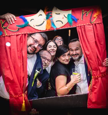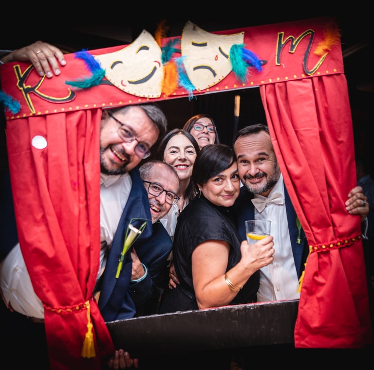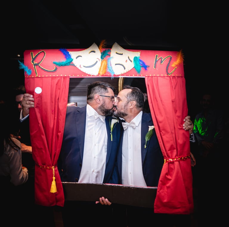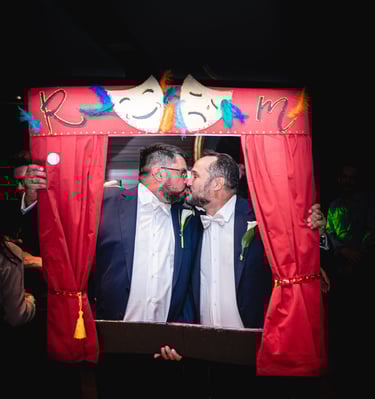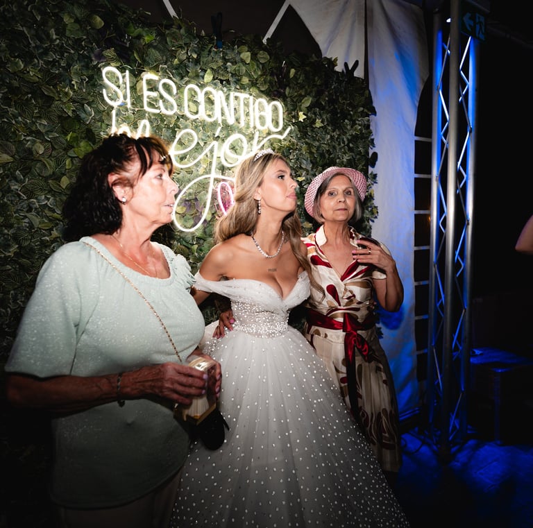 Un rincón lleno de diversión donde los invitados se hacen fotos espontáneas, con accesorios y copias impresas al instante para llevarse a casa.
